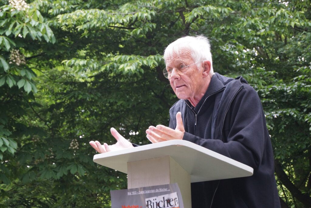 Er kam, wenn wir ihn riefen. Er unterstützte uns bei unserer Arbeit, der Gedenkarbeit. Bei den Veranstaltungen des Auschwitz-Komitees zur Erinnerung an die Befreiung des Konzentrations- und Vernichtungslagers Auschwitz durch die Rote Armee am 27. Januar 1945, zur Erinnerung an die Pogromnacht am 9. November 1938 und zu vielen anderen Anlässen. Seit Jahrzehnten war er im Mai bei den Lesungen aus den verbrannten Büchern dabei, die der Arbeitskreis „Bücherver­brennung – nie wieder!“ regelmäßig auf dem Hamburger Gedenkplatz organisiert.